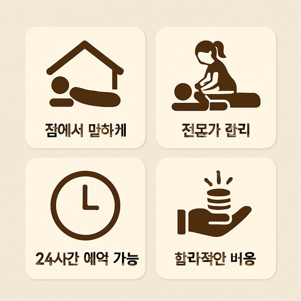 특히 호텔 출장마사지, 홈케어 마사지, 장거리 출장 중 피로 회복 마사지까지 다양한 상황에서 이용할 수 있어 직장인, 여행객, 주부, 중장년층 고객들에게 꾸준한 사랑을 받고 있습니다.